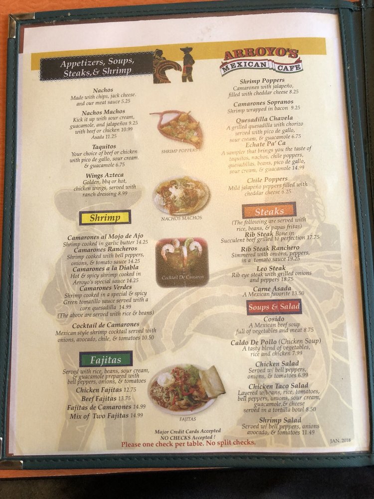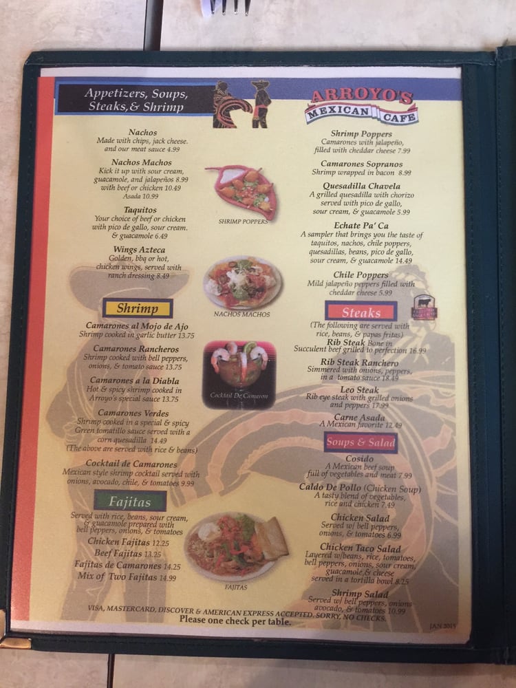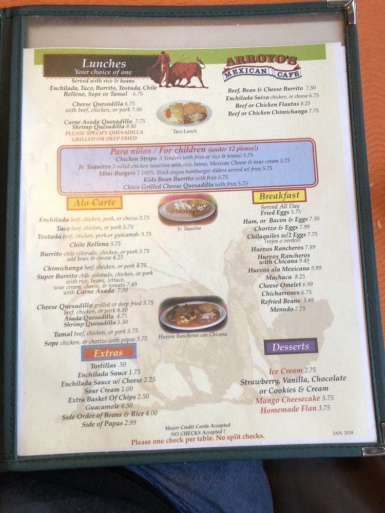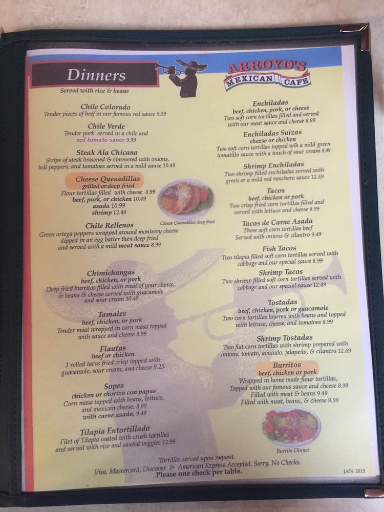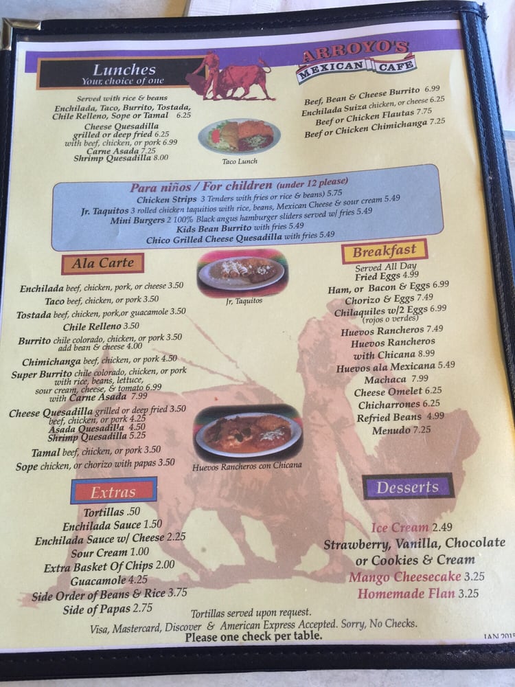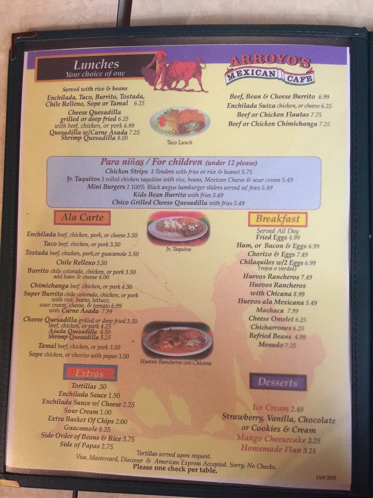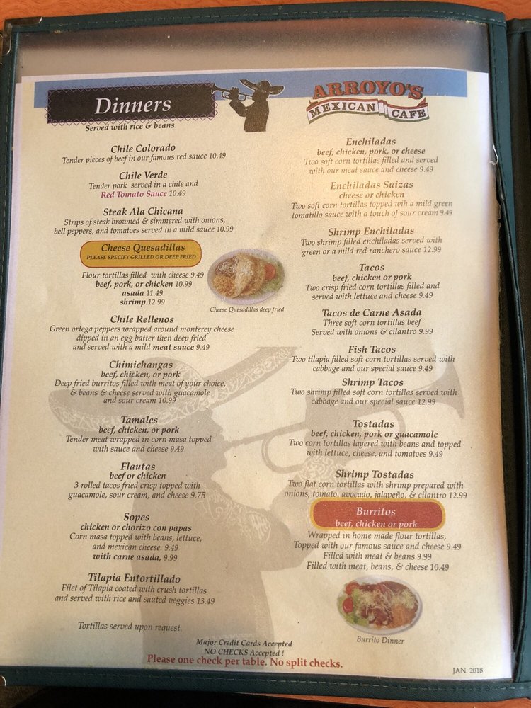 Arroyo's Mexican Cafe Menu (2025 Update)
